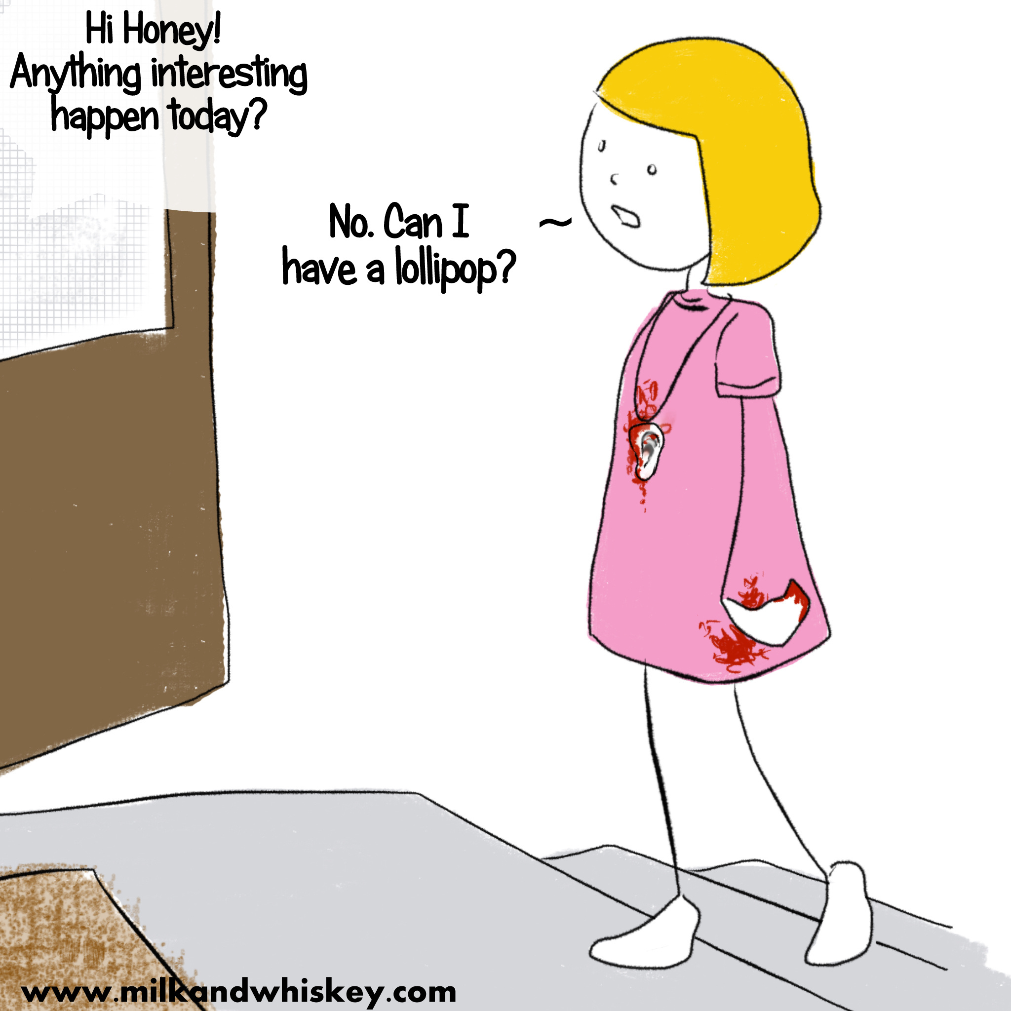 Me: “Wow, that’s actually a good answer. What if a stranger offers you a lollipop?”