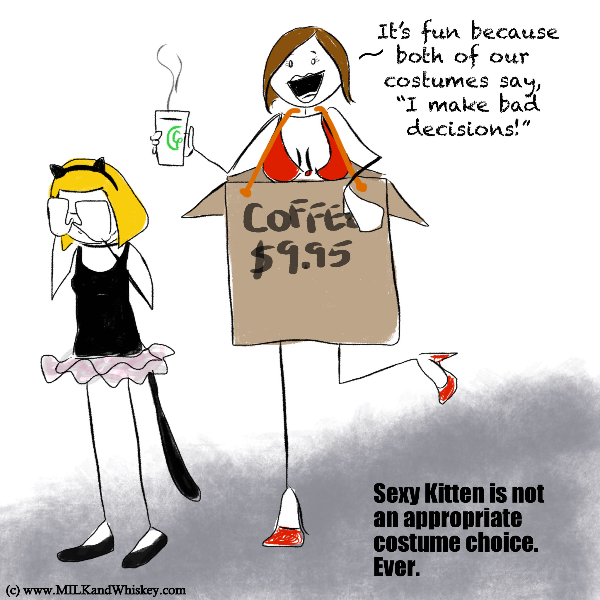 What I conveniently forget, is that the coffee kiosk by my house is what’s politely known as a “bikini barista” spot. To everyone who does not live in the Pacific Northwest – THIS EXISTS. There are coffee kiosks where the lady operating the espresso machine is wearing lace knickers and a bra. And sometimes a cowboy hat or devil horns, depending on the franchise. Yes, it turns out there are franchises. I’m not linking to them because – well, ew – but trust me; this is a thing. A woman in fancy underwear serves you coffee. And not in your own kitchen.