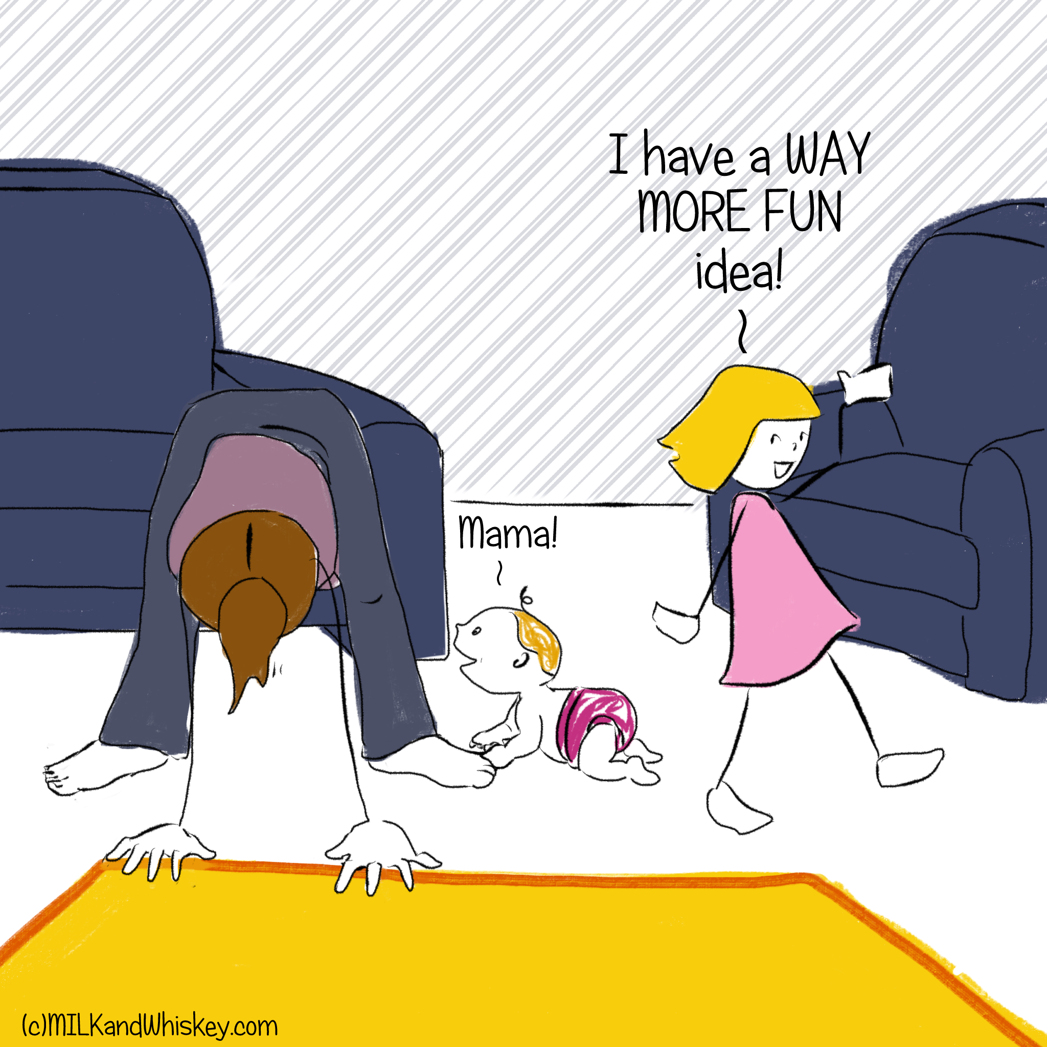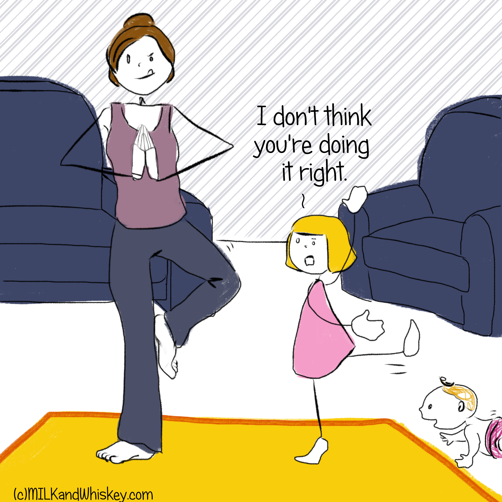 You know how sometimes you’re all pregnant and you’re standing in the checkout line at Ross and you see all those workout DVDs and think to yourself, “Yoga. Now that seems like a great way to get back in shape after this baby comes. The kid can even do it with me. It will be a beautiful, beautiful bonding experience. And so centering!”