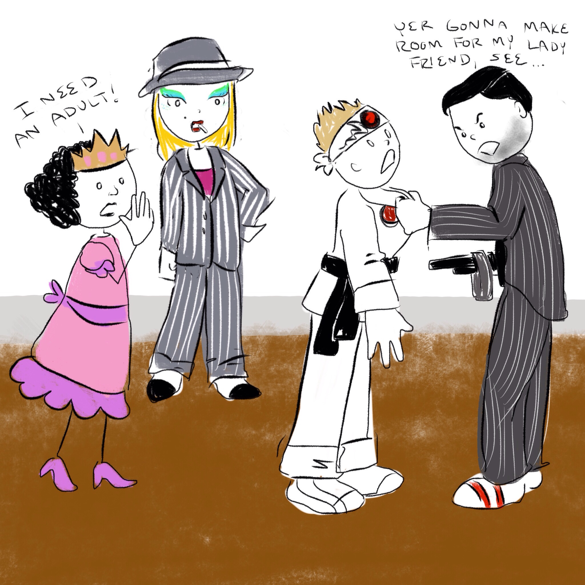 For the next seventeen minutes or so, Clyde terrorized the daycare. He stole candy from cats. He cut the line in front of princesses and fairies. He shoved and extorted and intimidated and generally behaved like an absolute freaking monster (or a gangster, I guess) while I followed obediently behind watching it all unfold (and maybe enjoying the power just a wee bit), until a teacher took away my tommy gun and made us sit on the curb.