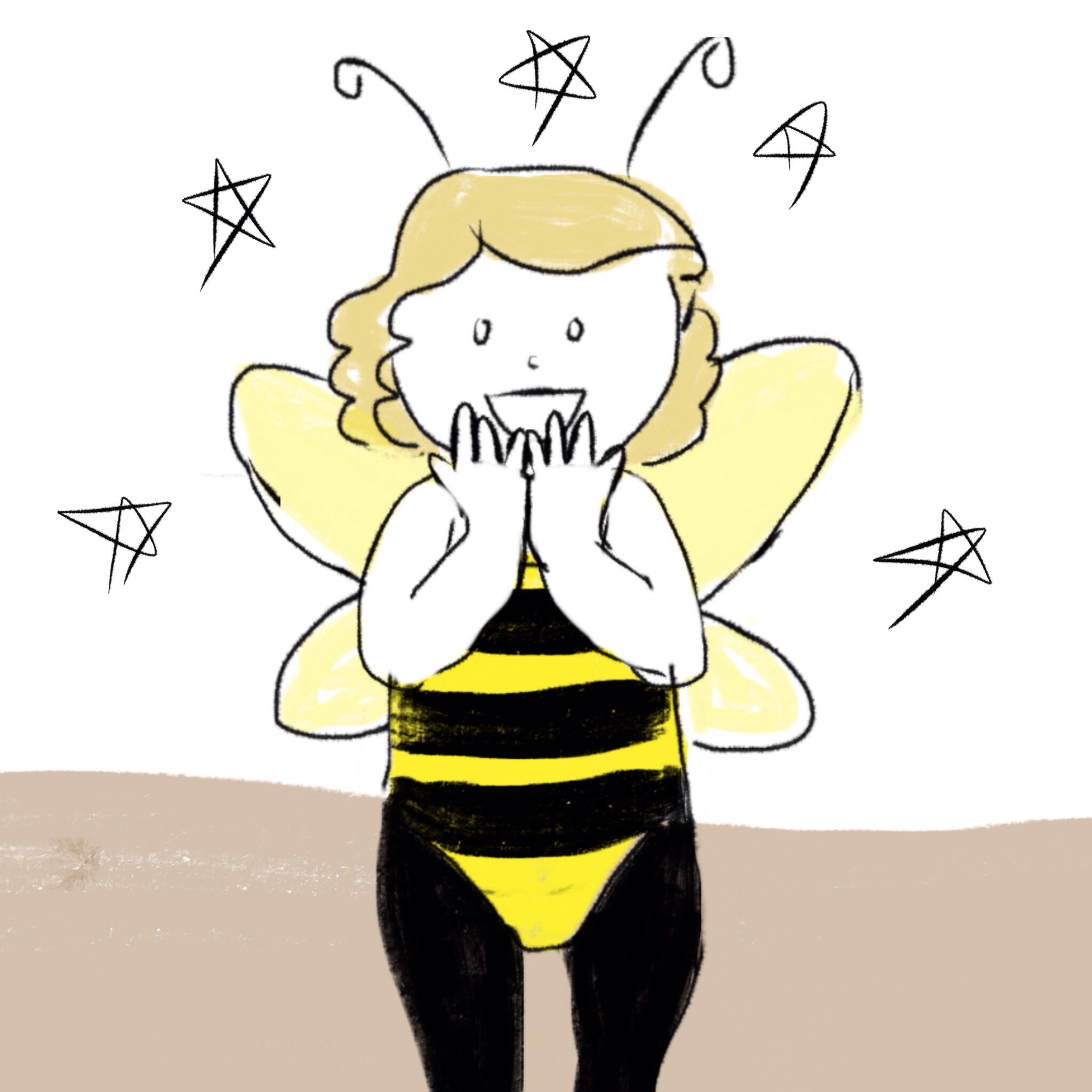 I made the finals in the costume contest. I stood on a little stage next to the other kids as they counted down to the winner. It was between me and a girl in a store-bought bumble bee costume. All my giddiness from the morning came back. This was it. I never won ANYTHING, ever, but I was going to win this. There was no way they would give first prize to a $20 baby-costume over my home made awesomeness. I posed, I made my bad-ass face, I made my gun go clickaclickaclicka.
