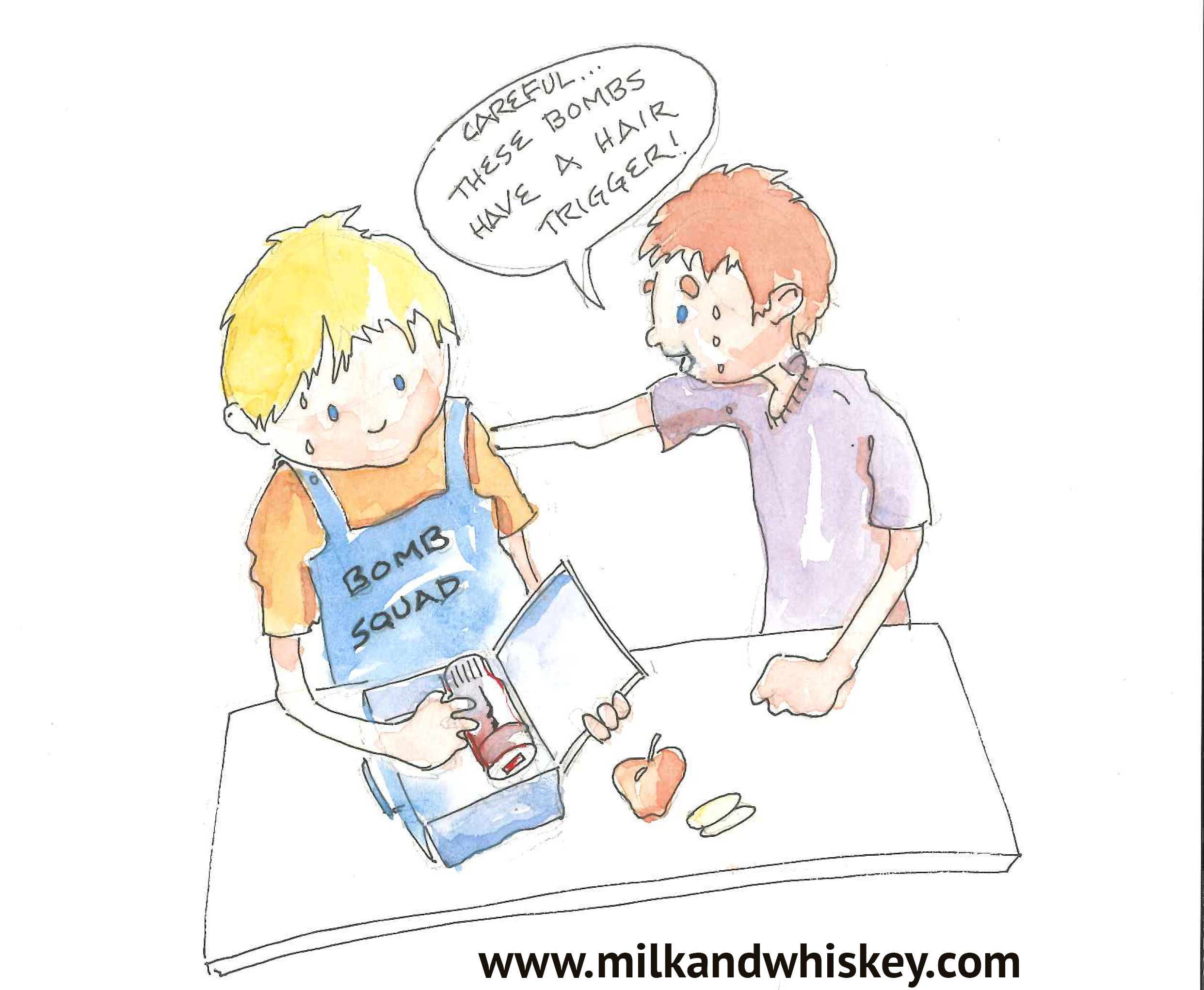 My lunch detonated into a world of sticky brown foam. I was soaked and the kids next to and behind me were lightly sprayed. It was like one of those Diet Coke/Mentos videos, if you were looking straight into the two liter.  I sat stunned for a second, coughing and sputtering because a bunch of it went up my nose. Then came the secondary explosions. I have it on good authority that never in the history of third grade lunch has that much milk shot out of that many noses at once. All the kids started cracking up; it took three lunch attendants and the vice principal to restore order.