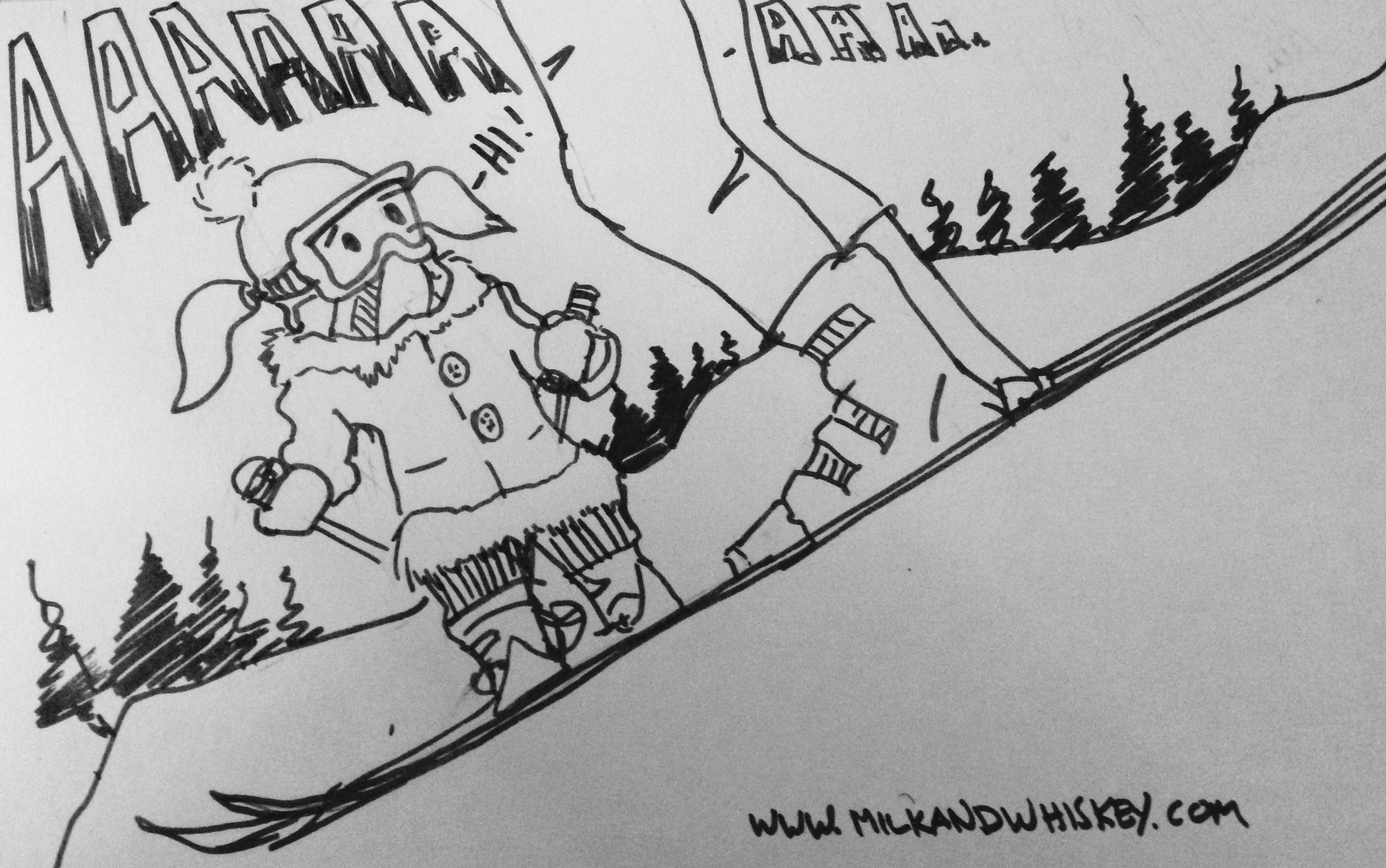 She gave up on the snow plow entirely, along with any semblance of control. She flew past me in seconds, showing no regard for turning, style, or the lives of those around her. She probably would have made a capable racer if she stuck with her technique and perhaps added some element of control. MILK definitely infused some extra excitement into the slopes that day by becoming the Pink Kamikaze. Once she survived that first run, she was unstoppable.