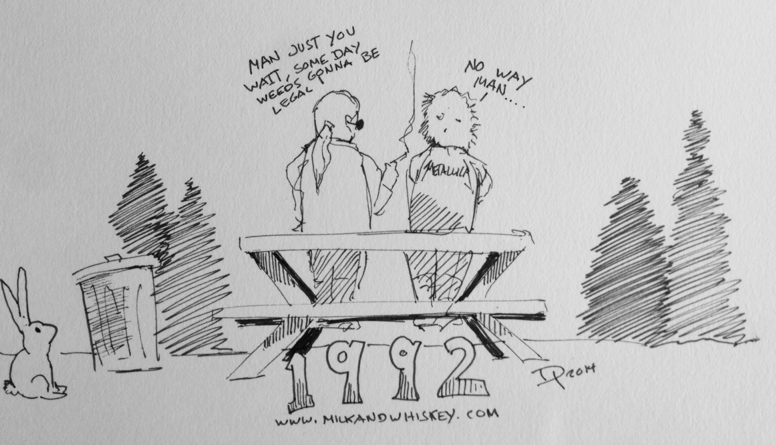 So I’m up in Washington visiting MILK and getting the kids together for the holidays. As you may know, weed recently became totally legal here. You don’t even have to fake back pain to buy it. Low and behold there was a weed store or bar or whatever you call them that opened a couple blocks from MILK’s house. Perfect for last minute stocking stuffers! How could I not go in and check it out? I guess I was expecting a full hippy-grease scented headshop with black light posters and macrame bracelets. I ended up in McDonald’s for stoners, stoners like regular McDonalds too… but I’m just trying to convey the atmosphere.