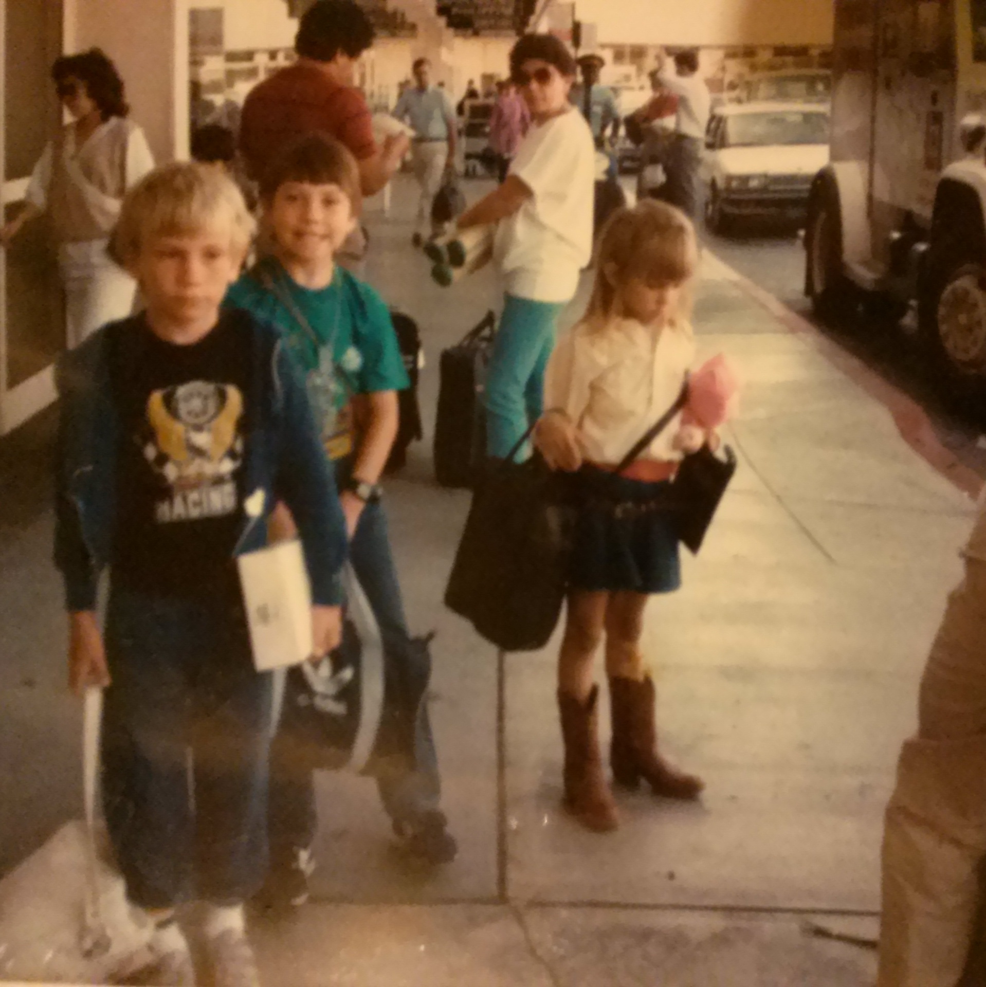 Whiskey, Uncle Smokey, and MILK, getting curb checked at SFO.