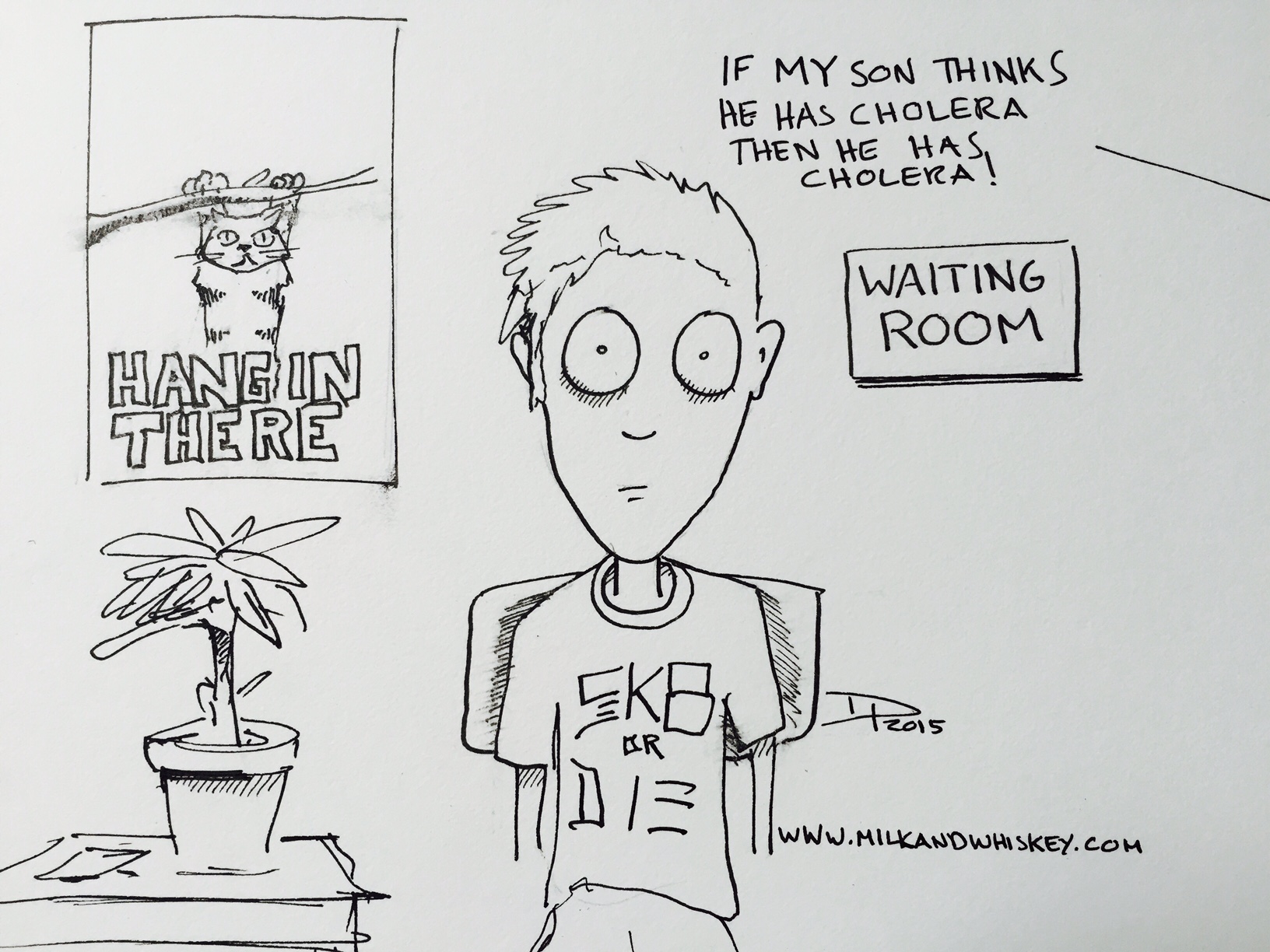 So we would get in the car and go to the doctor’s office, which presented a delicate situation for me because I would have to do my song and dance for a much more discerning audience. I would go into the room pitch my case, and I shit you not the guy would stick his finger in my ass. Temperature, how are you feeling, say ah, drop you pants and here’s your lollypop you’re fine.