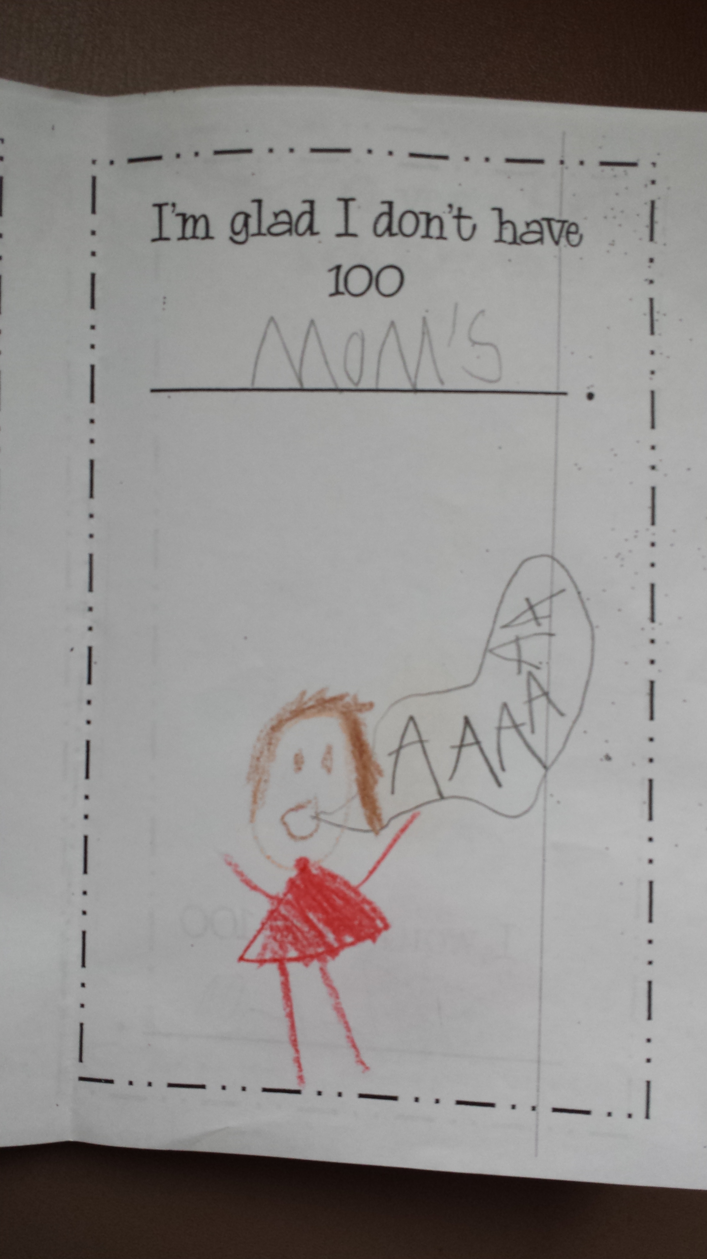 Here’s the thing – today is the 100th day of school. She’s supposed to dress up like a 100 year old. We picked out some outfits last night and I’m supposed to give her face wrinkles today. I live for this stuff. It’s Halloween in February – what’s not fun about that!? I have fake glasses, pearls, a plethora of scarves. Her Bubbie even gave her a cool old hat with a veil and a big velvet bow. We were super excited about this…14 hours ago. Okay, I was super excited. These are supposed to be the parenting moments that make it all worthwhile! How does she not know that!?